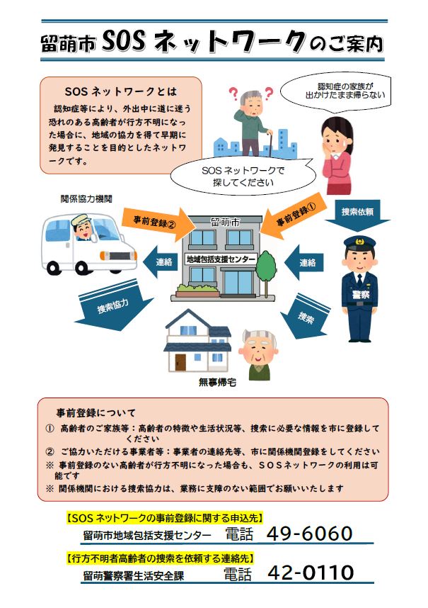 ※高齢者の事前登録を希望される方、SOSネットワークにご協力いただける事業所等の方は、留萌市地域包括支援センターまでお問い合わせください。