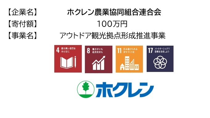 | (株)アシロ | 東京都新宿区 | 道の駅るもい整備事業 | 100,000円 |