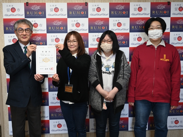 益田市長は、「留萌の新入学児童のために心のこもった手作りストラップを寄贈していただきありがとうございます。スマイル様にはストラップの寄贈だけでなく、沖見児童センターの除雪も担っていただいている。これからも引き続き、ご支援・ご協力をお願いしたい」と述べ、一般社団法人スマイル 代表理事 鵜飼様は「本日はこのような場を設けていただきありがとうございます。新入学児童へのお祝いであると共に、障がいのある方でもできる仕事がたくさんあるということを広めるための活動でもあるため、今後もできることを続けていきたいと考えている」と述べられました。