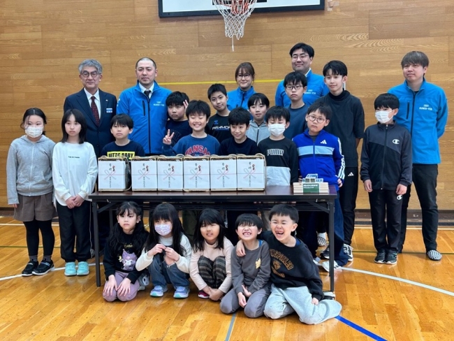 益田市長は、「プラスチックのおもちゃとはまた違った味わいがある道具で、モルックを知っている人も知らない人も楽しく遊んでもらえたら嬉しい。今回の寄附は萌っこ春待里の収益金を活用していただいたと伺っており、大変感謝している。」と述べ、留萌商工会議所青年部 会長 前田様は「感謝状の贈呈ありがとうございます。木のぬくもりを感じながら、ボロボロになるまで遊んでほしい。」と述べました。